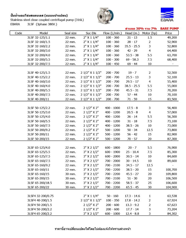 ปั๊มน้ำหอยโข่งสแตนเลส รุ่น 3LSF