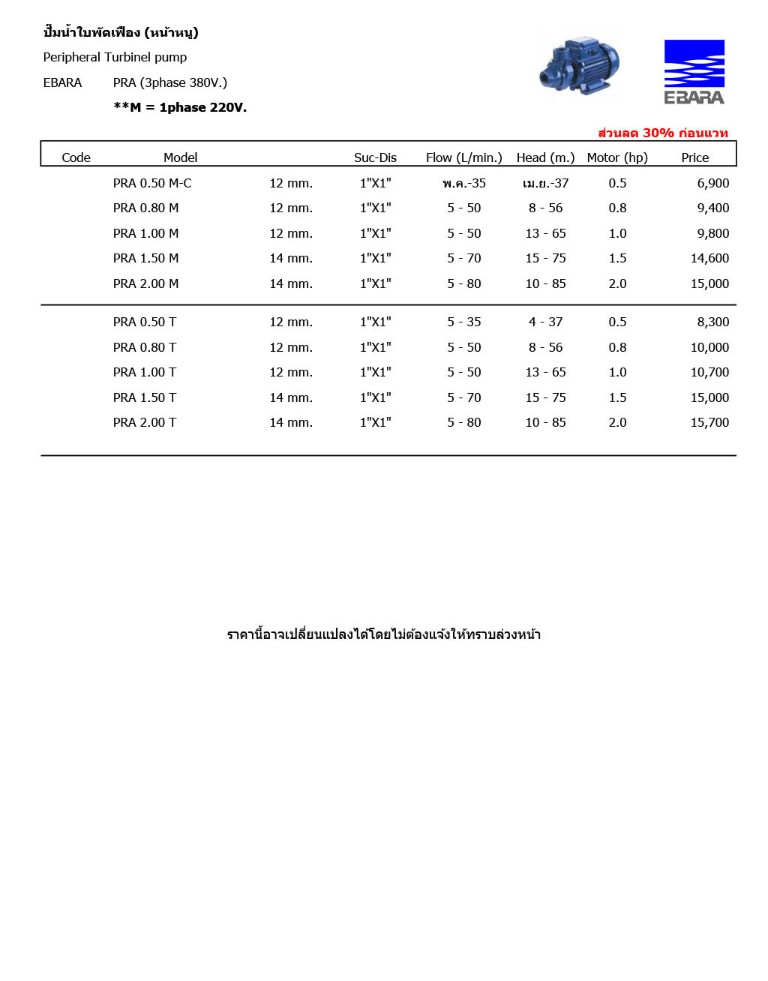 ปั๊มน้ำใบพัดเฟือง (หน้าหนู) รุ่น PRA