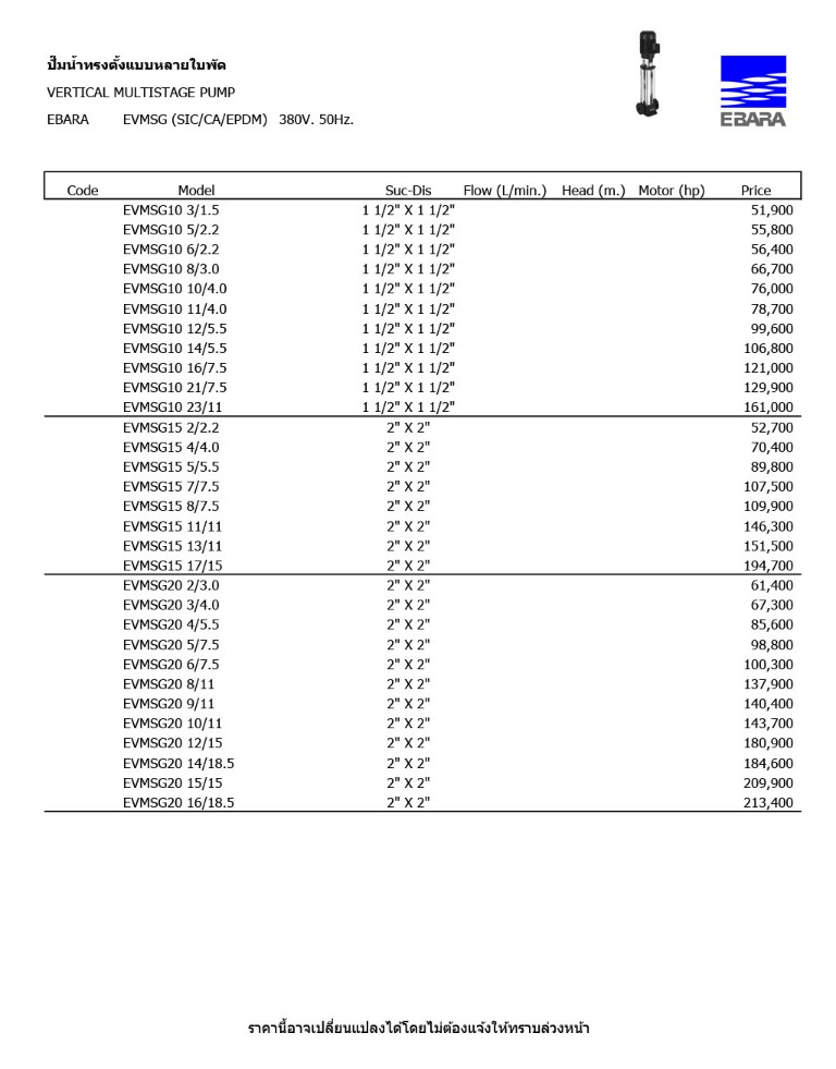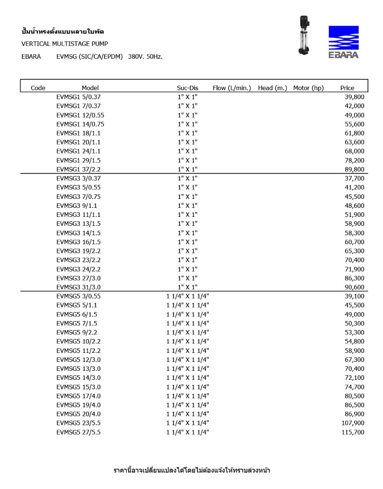 ปั๊มน้ำทรงตั้งแบบหลำยใบพัด รุ่น EVMSG