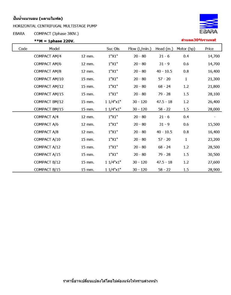 ปั๊มน้ำแนวนอน (หลายใบพัด) รุ่น COMPACT