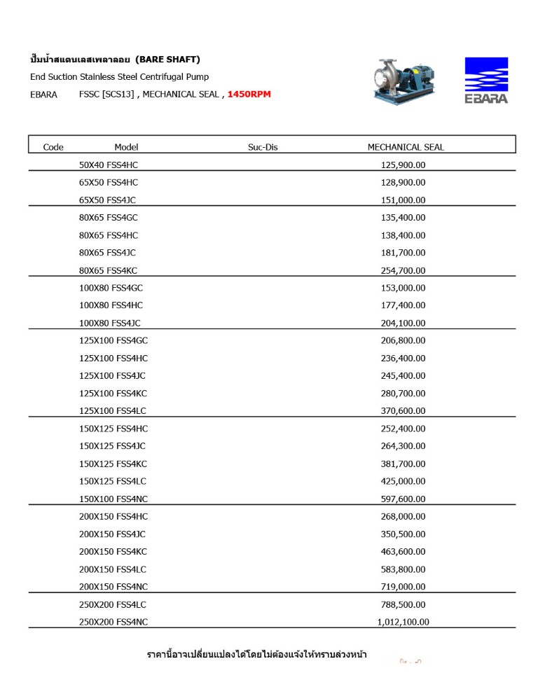 ปั๊มน้ำสแตนเลสเพลาลอย (BARE SHAFT) รุ่น FSSC